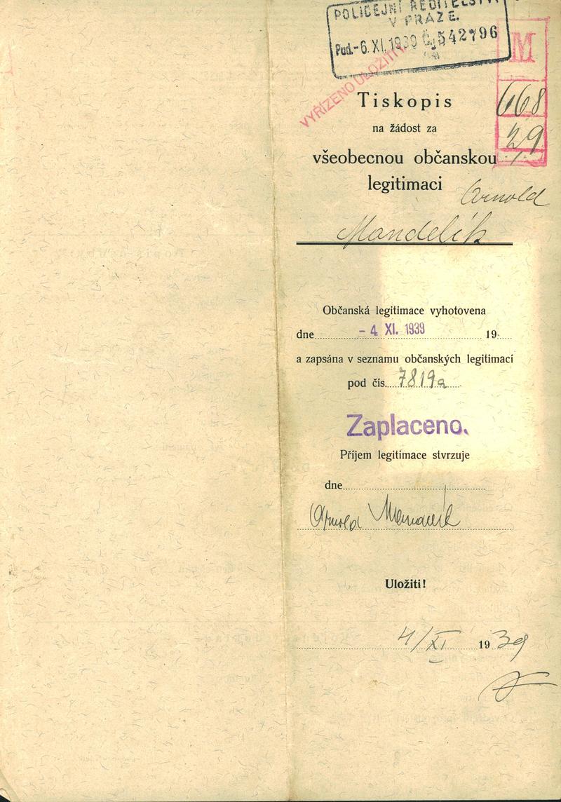 Mandelik Arnold: Žádost o vydání občanské legitimace