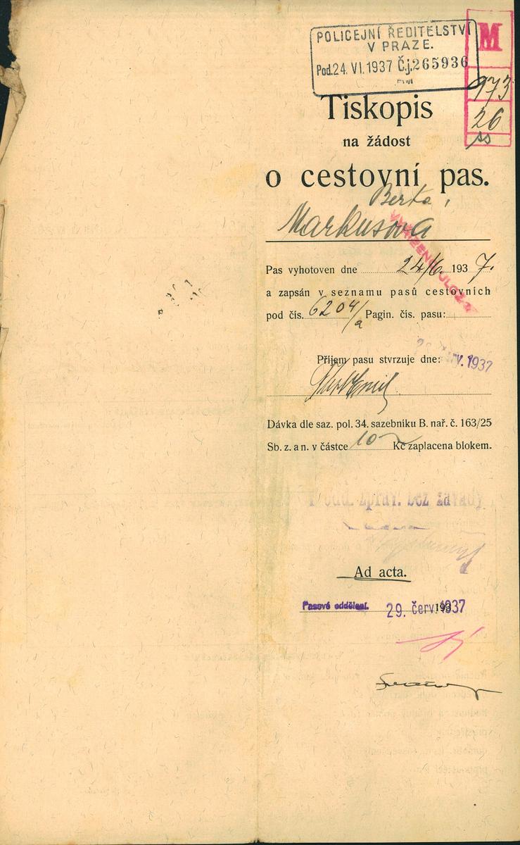 Nationalarchiv Prag > Polizei-Direktion Prag > 1931-1940 > M > Markusová Berta