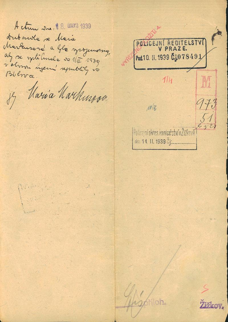 Nationalarchiv Prag > Polizei-Direktion Prag > 1931-1940 > M > Markusová Marie