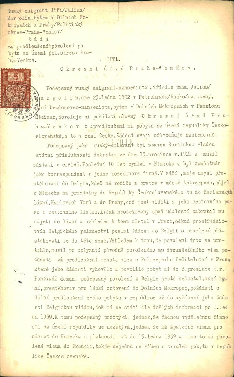 Margolin Julius: Žádost o prodloužení povolení pobytu