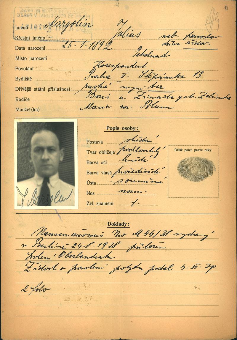 Nationalarchiv Prag > Polizei-Direktion Prag > 1941-1950 > M > Margolin Julius