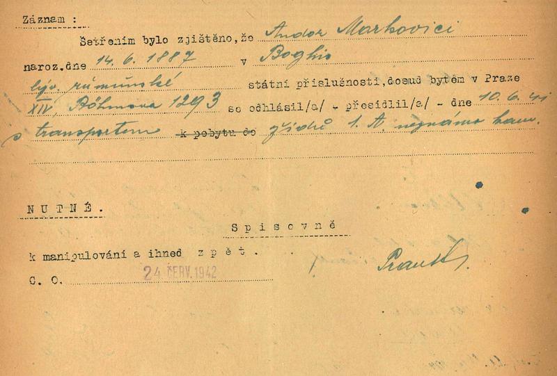 Nationalarchiv Prag > Polizei-Direktion Prag > 1941-1950 > M > Marcovici Andor