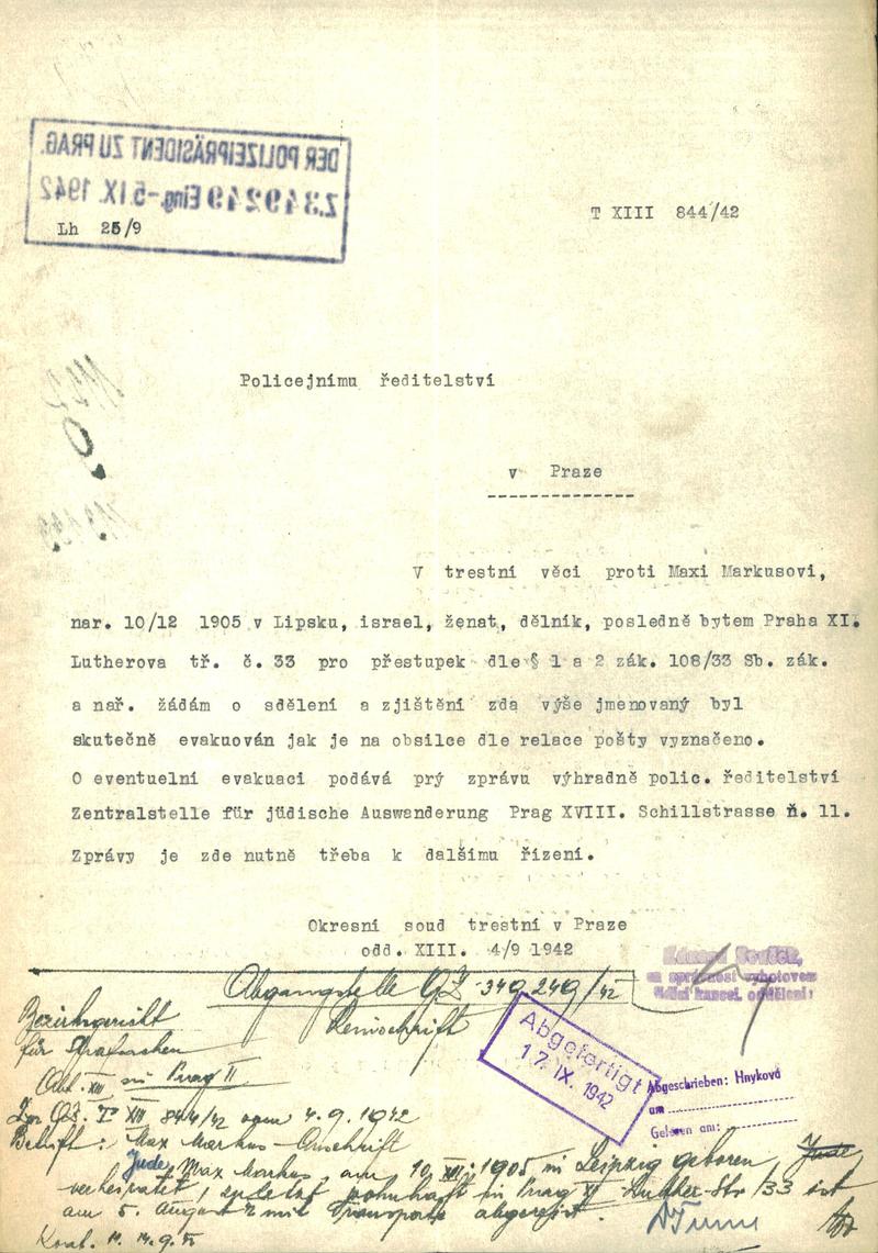 Nationalarchiv Prag > Polizei-Direktion Prag > 1941-1950 > M > Marcus Max