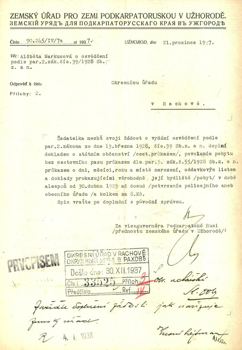 Markusová Alžběta: Výzva k doplnění žádosti o vystavení osvědčení o státní příslušnosti