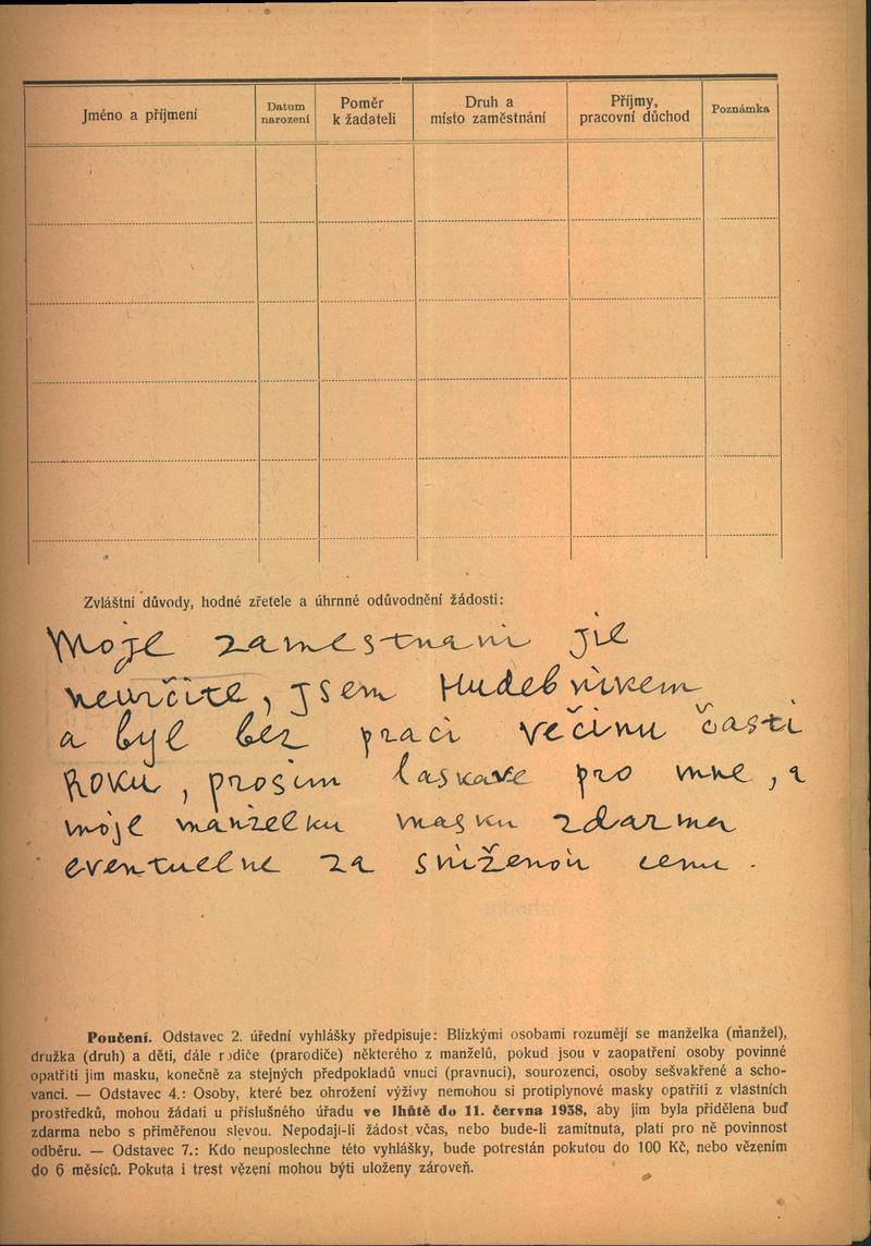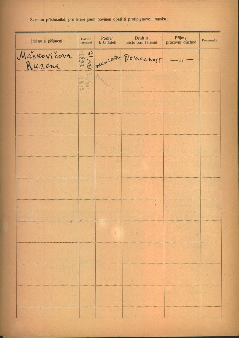 Maškoviç Jakub: Žádost o přidělení plynové masky