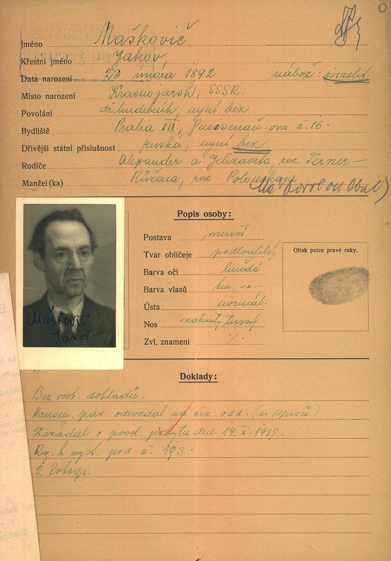Nationalarchiv Prag > Polizei-Direktion Prag > 1941-1950 > M > Maškoviç Jakub