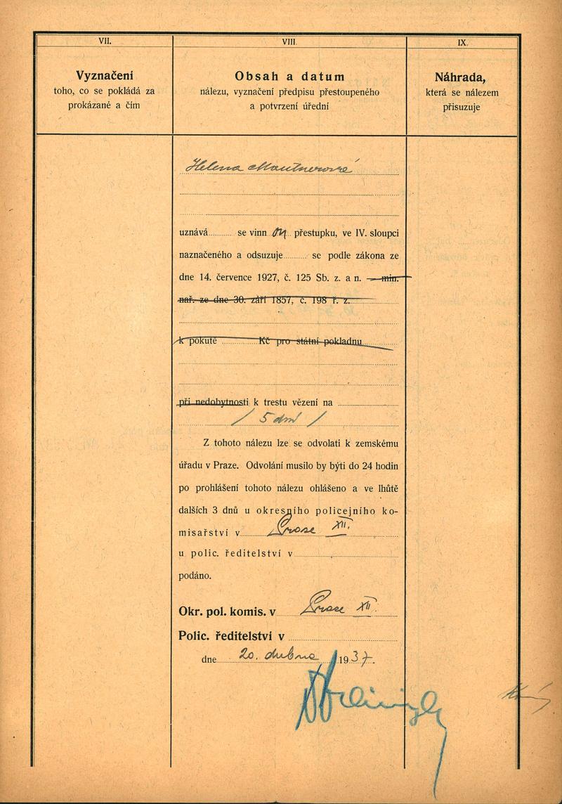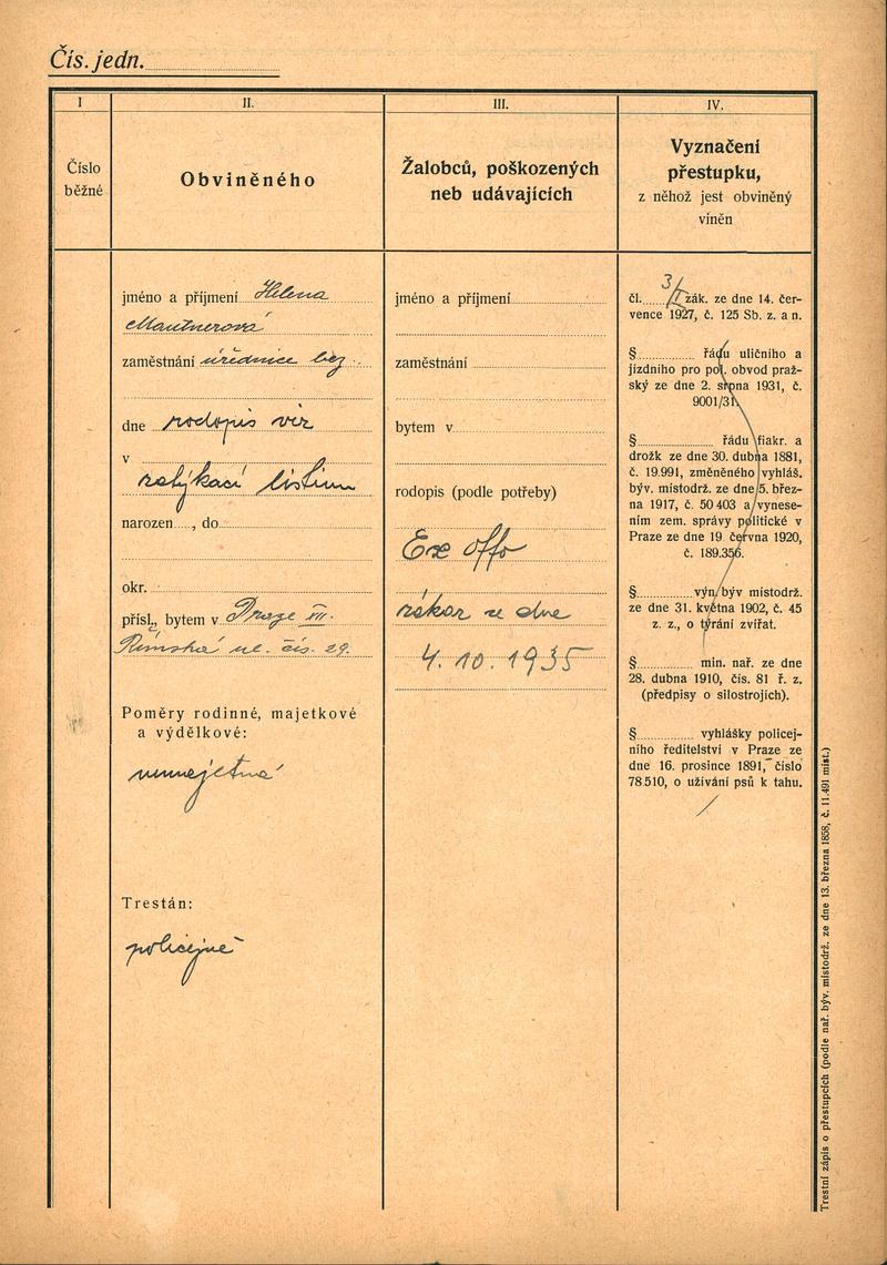 Nationalarchiv Prag > Polizei-Direktion Prag > 1941-1950 > M > Mautnerová Helena
