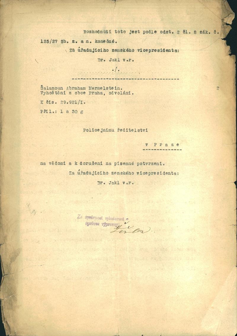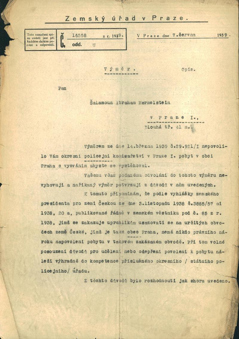Nationalarchiv Prag > Polizei-Direktion Prag > 1941-1950 > M > Mermelstein Abraham