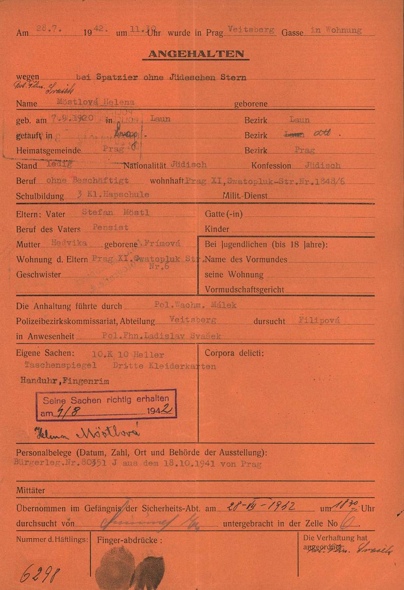 Nationalarchiv Prag > Polizei-Direktion Prag > 1941-1950 > M > Möstlová Helena