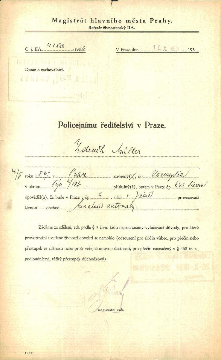 Nationalarchiv Prag > Polizei-Direktion Prag > 1941-1950 > M > Müller Zdenek