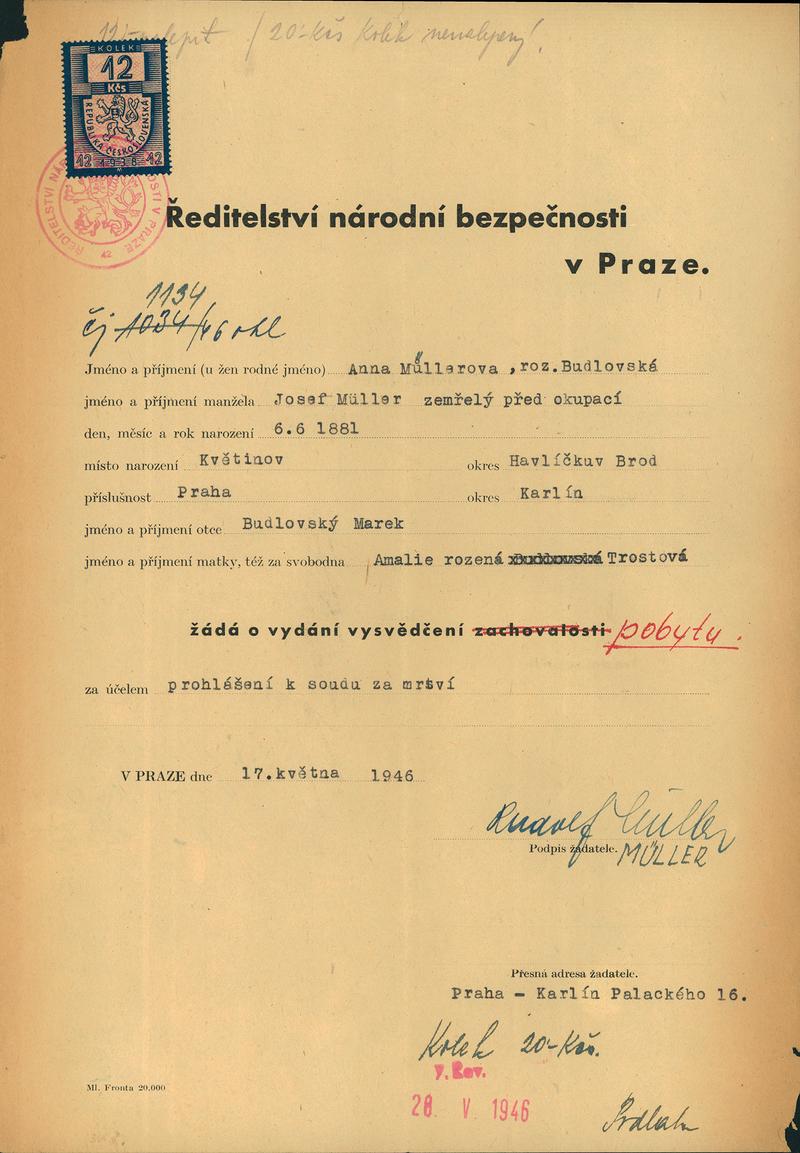 Nationalarchiv Prag > Polizei-Direktion Prag > 1941-1950 > M > Müllerová Anna