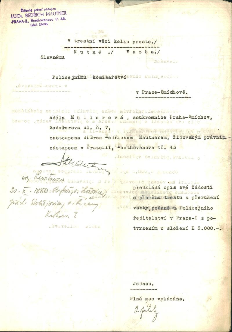 Nationalarchiv Prag > Polizei-Direktion Prag > 1941-1950 > M > Müllerová Adéla