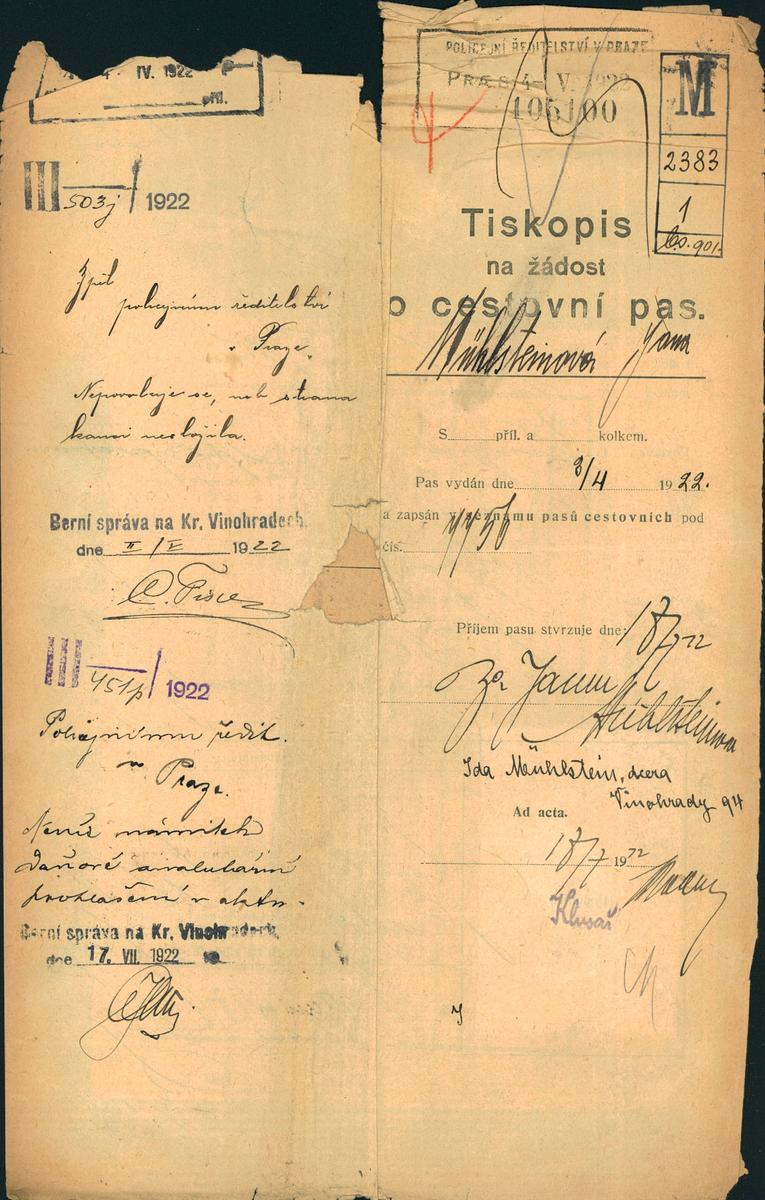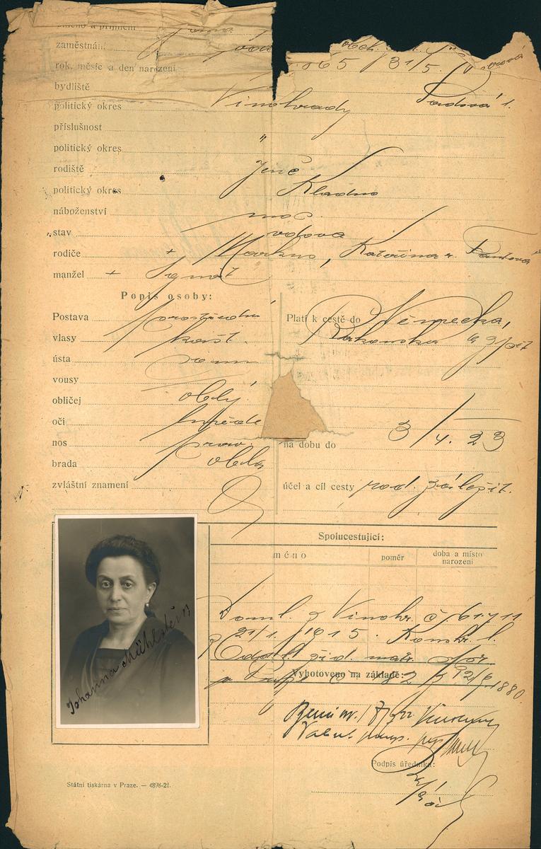 Mühlsteinová Jana: Žádost o vydání cestovního pasu