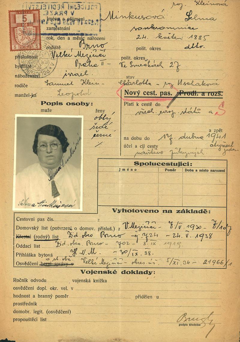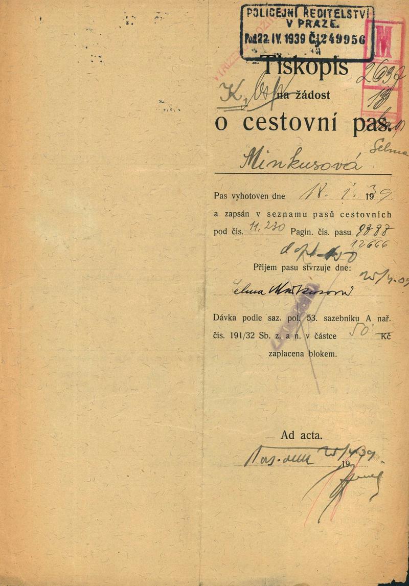 Minkusová Selma: Žádost o vydání cestovního pasu