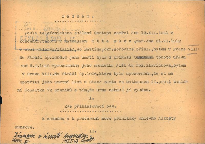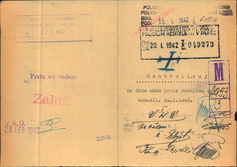 Nationalarchiv Prag > Polizei-Direktion Prag > 1941-1950 > M > Münz Otto