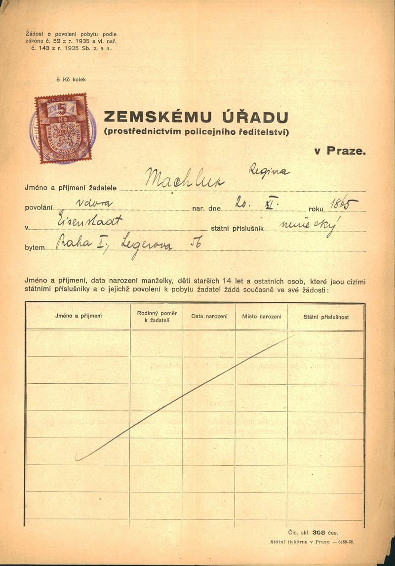 Nationalarchiv Prag > Polizei-Direktion Prag > 1941-1950 > M > Machlupová Regina