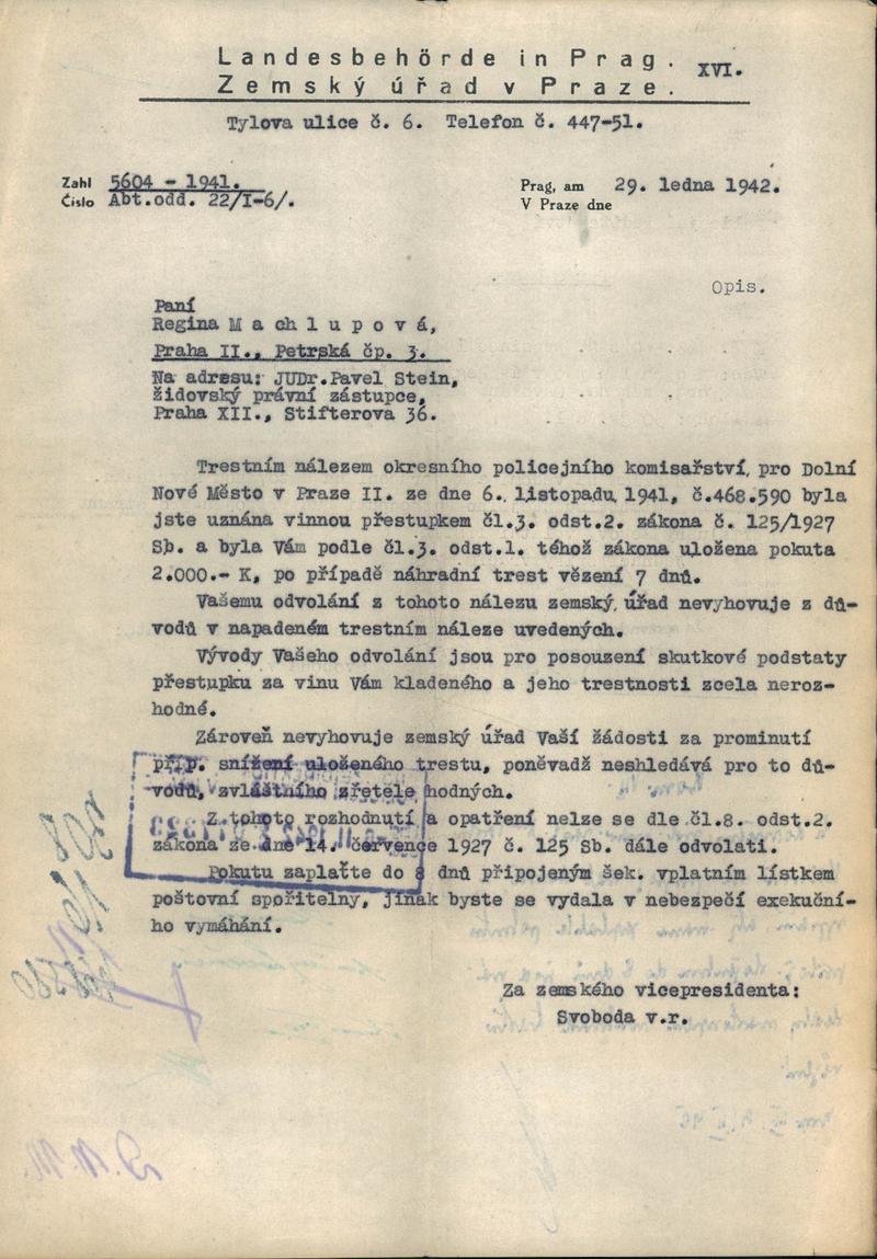 Nationalarchiv Prag > Polizei-Direktion Prag > 1941-1950 > M > Machlupová Regina