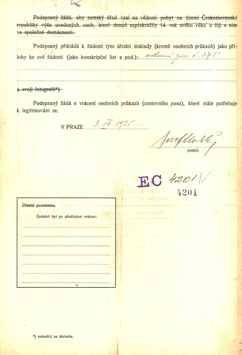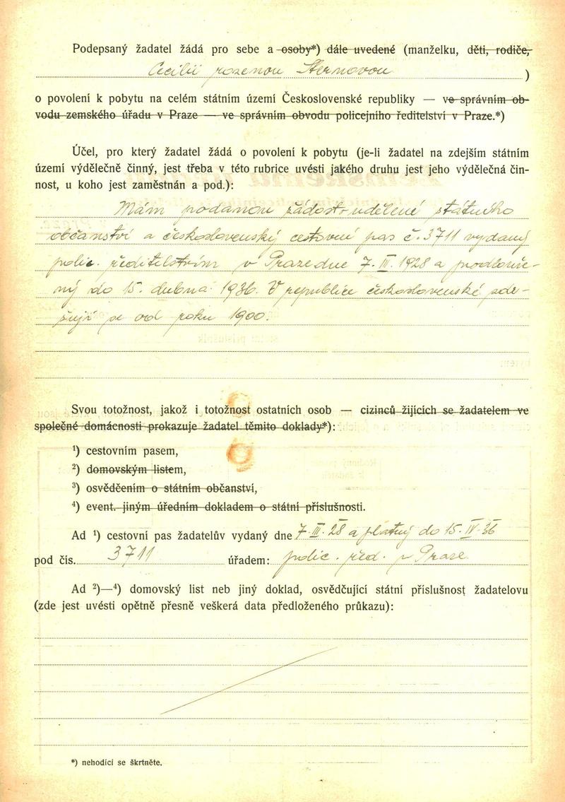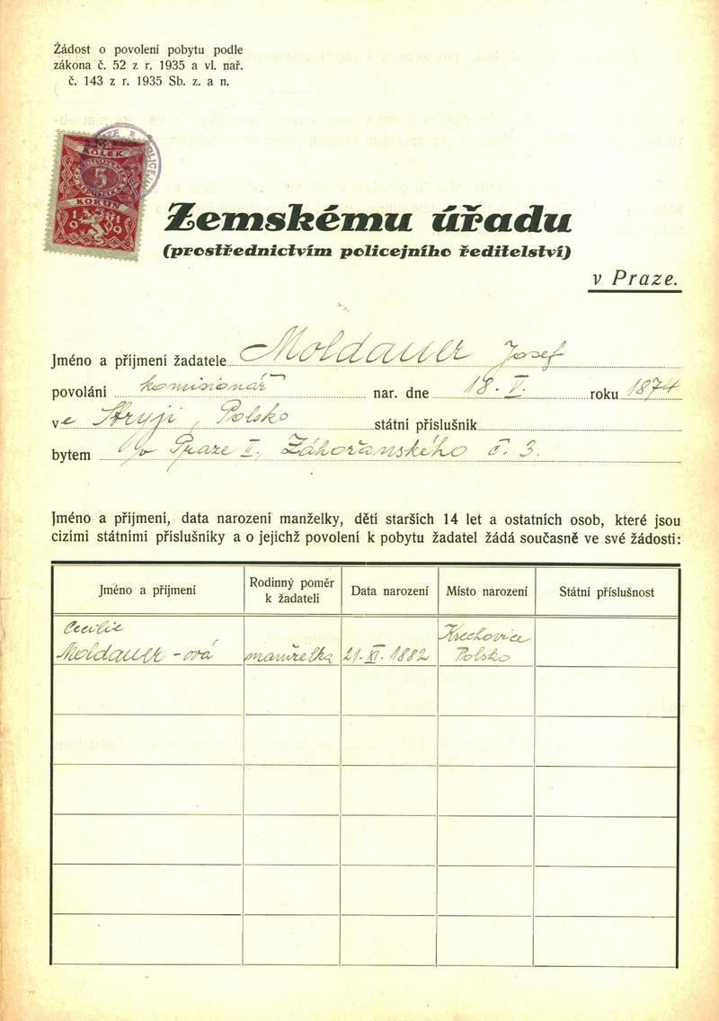 Moldauer Josef: Žádost o povolení pobytu