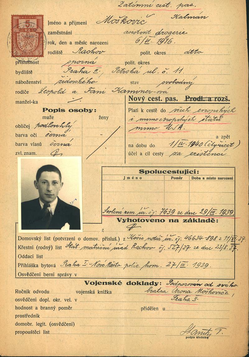 Moškovič Kalman: Žádost o vydání cestovního pasu
