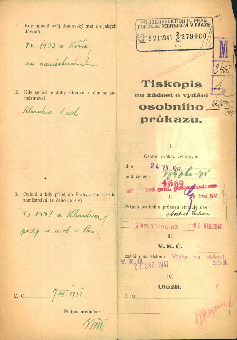 Nationalarchiv Prag > Polizei-Direktion Prag > 1941-1950 > M > Moškovič Kalman