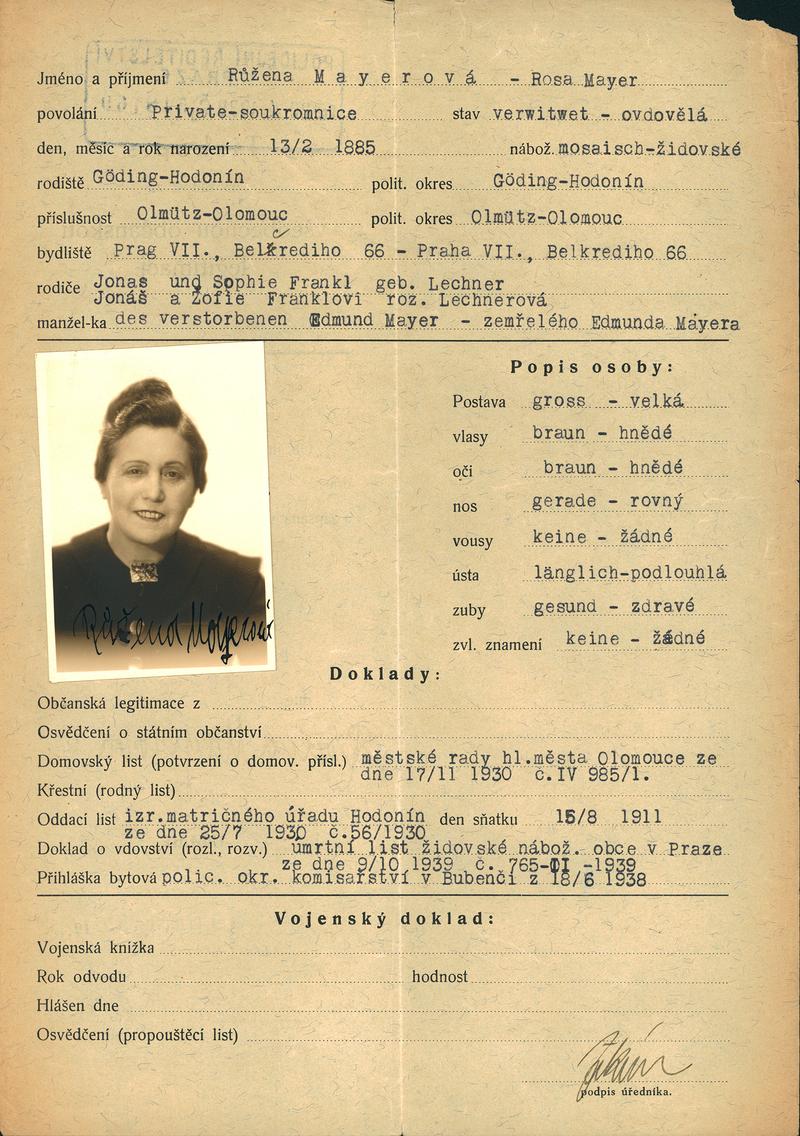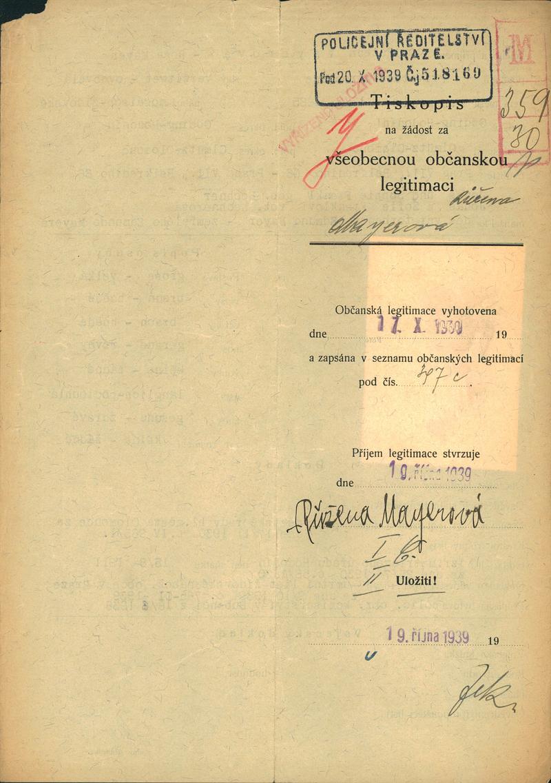Mayerová Růžena: Žádost o vydání občanské legitimace