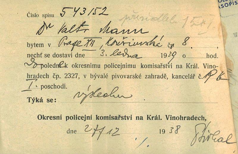 Nationalarchiv Prag > Polizei-Direktion Prag > 1941-1950 > M > Mann Walter