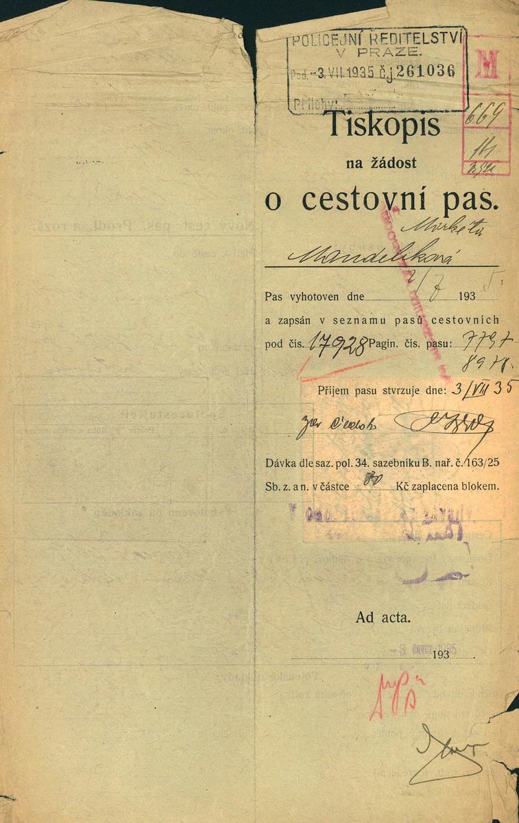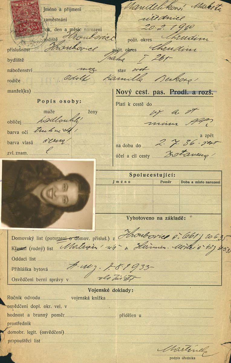 Mandeliková Markéta: Žádost o vydání cestovního pasu