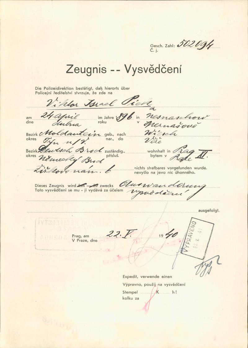 Nationalarchiv Prag > Polizei-Direktion Prag > 1931-1940 > P > Pick Viktor