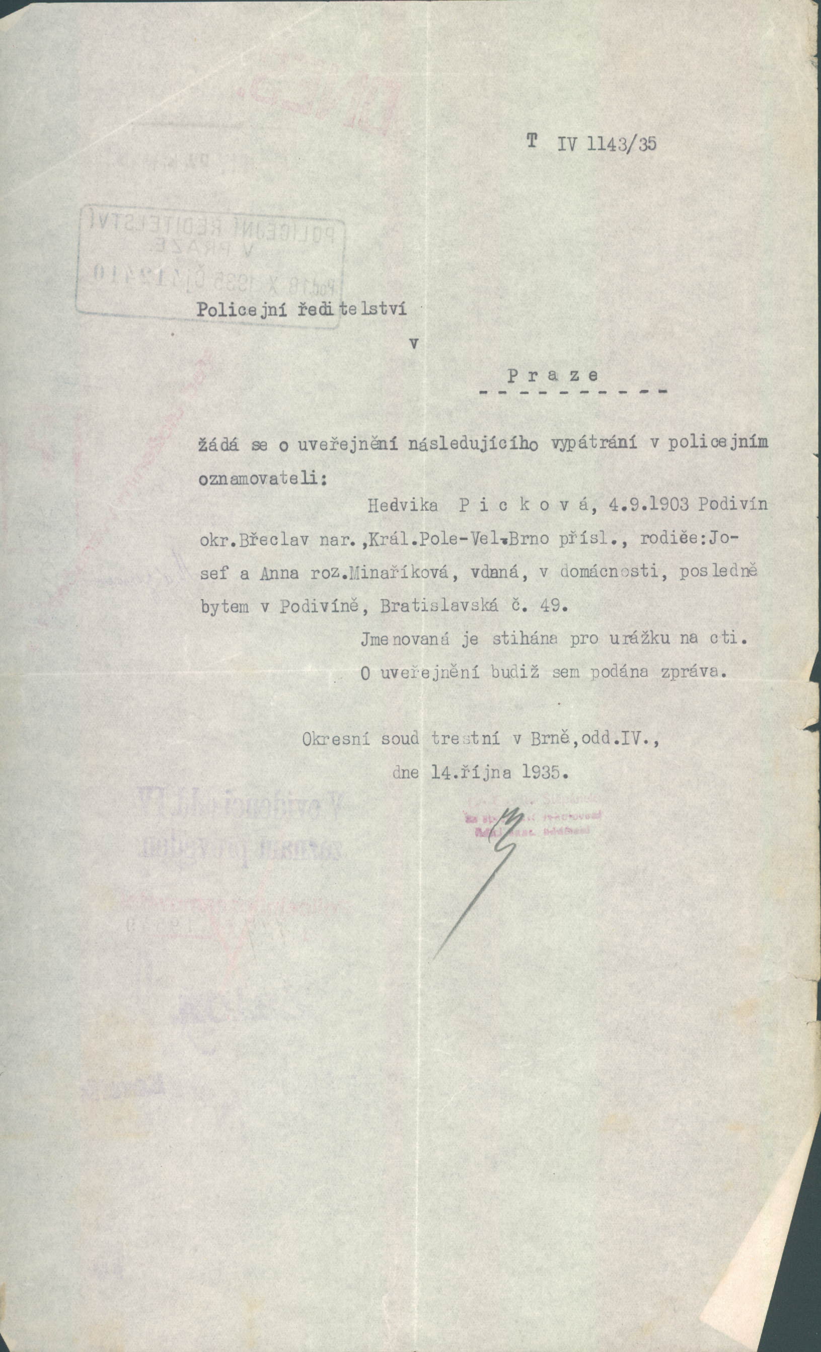 Picková Hedvika: Pátrání po osobě