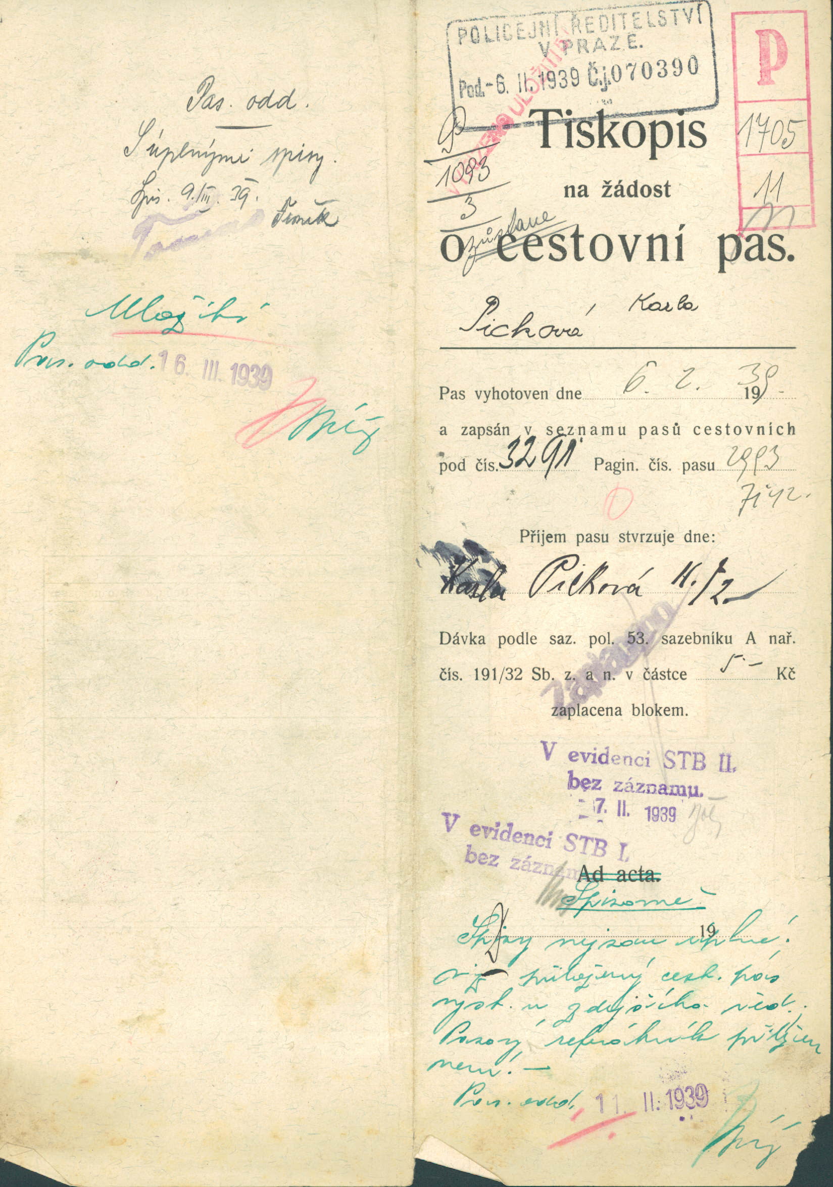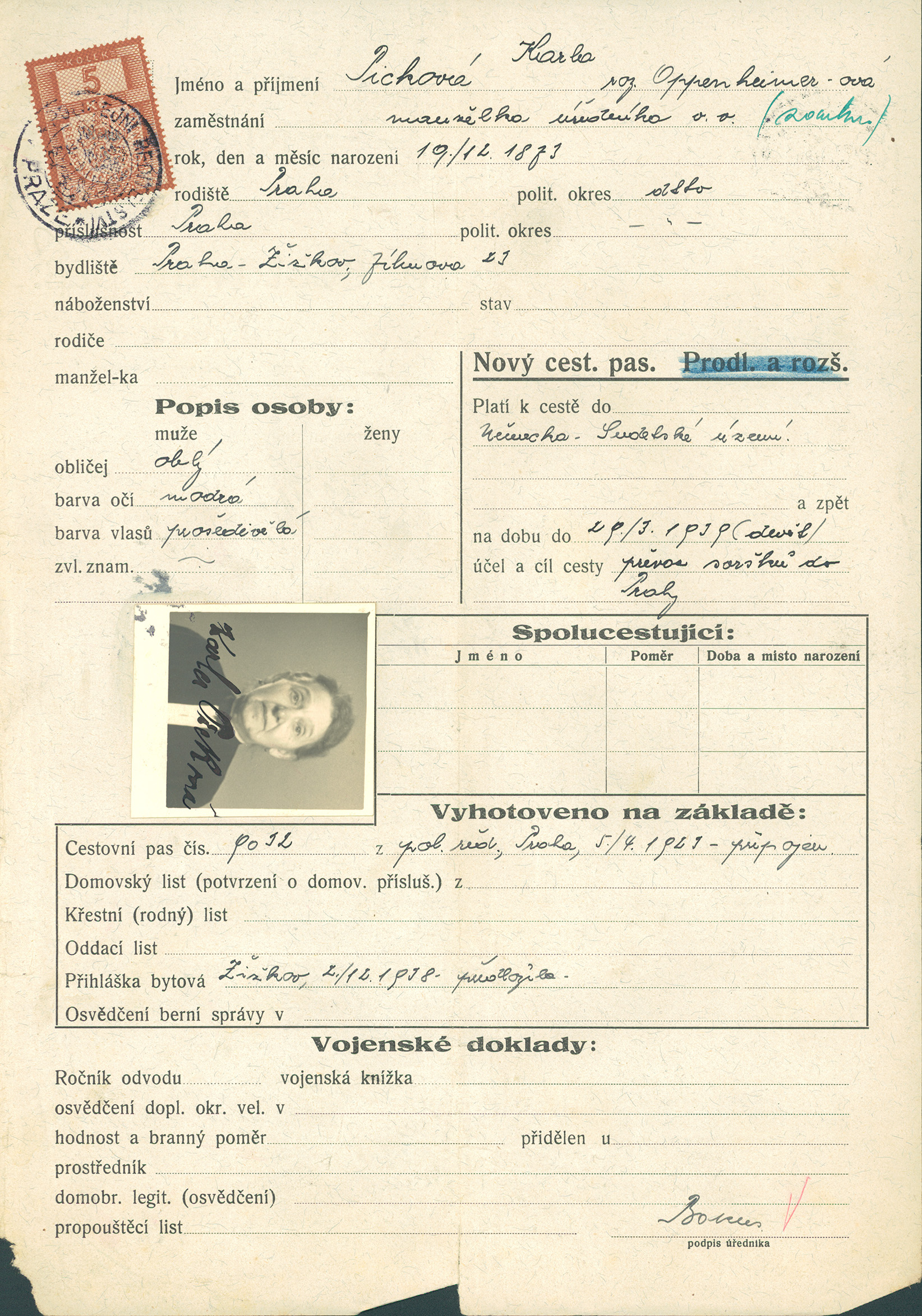 Picková Karolina: Žádost o vydání cestovního pasu