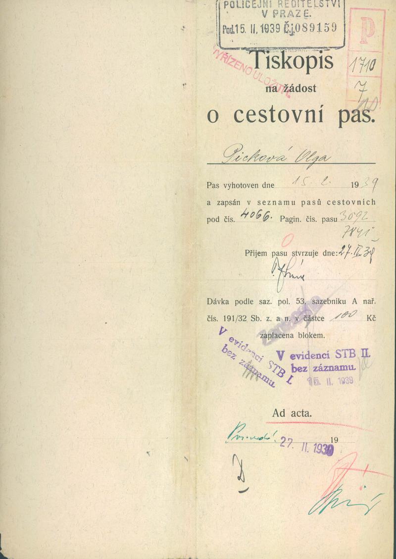 Nationalarchiv Prag > Polizei-Direktion Prag > 1931-1940 > P > Picková Olga