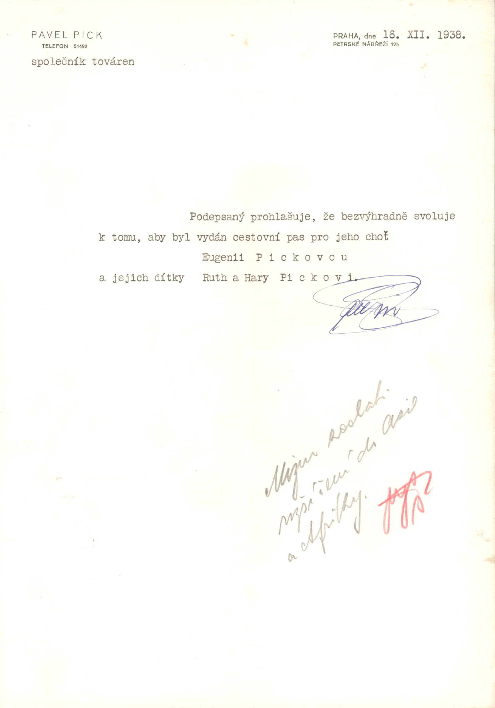 Picková Evženie: Souhlas s vydáním cestovního pasu