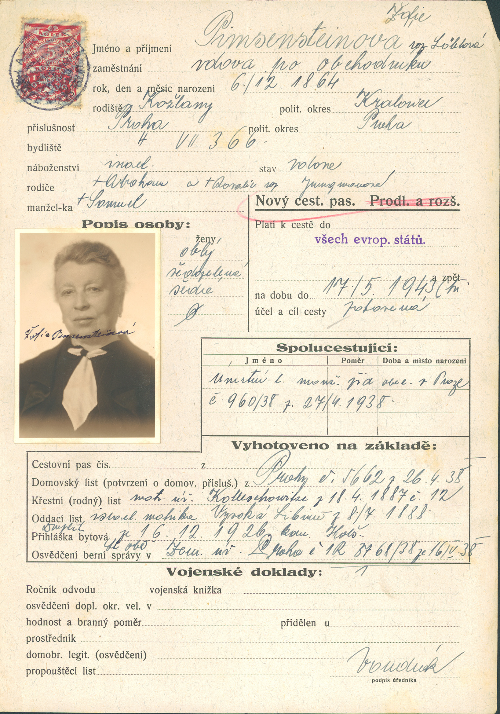 Pimsensteinová Žofie: Žádost o vydání cestovního pasu