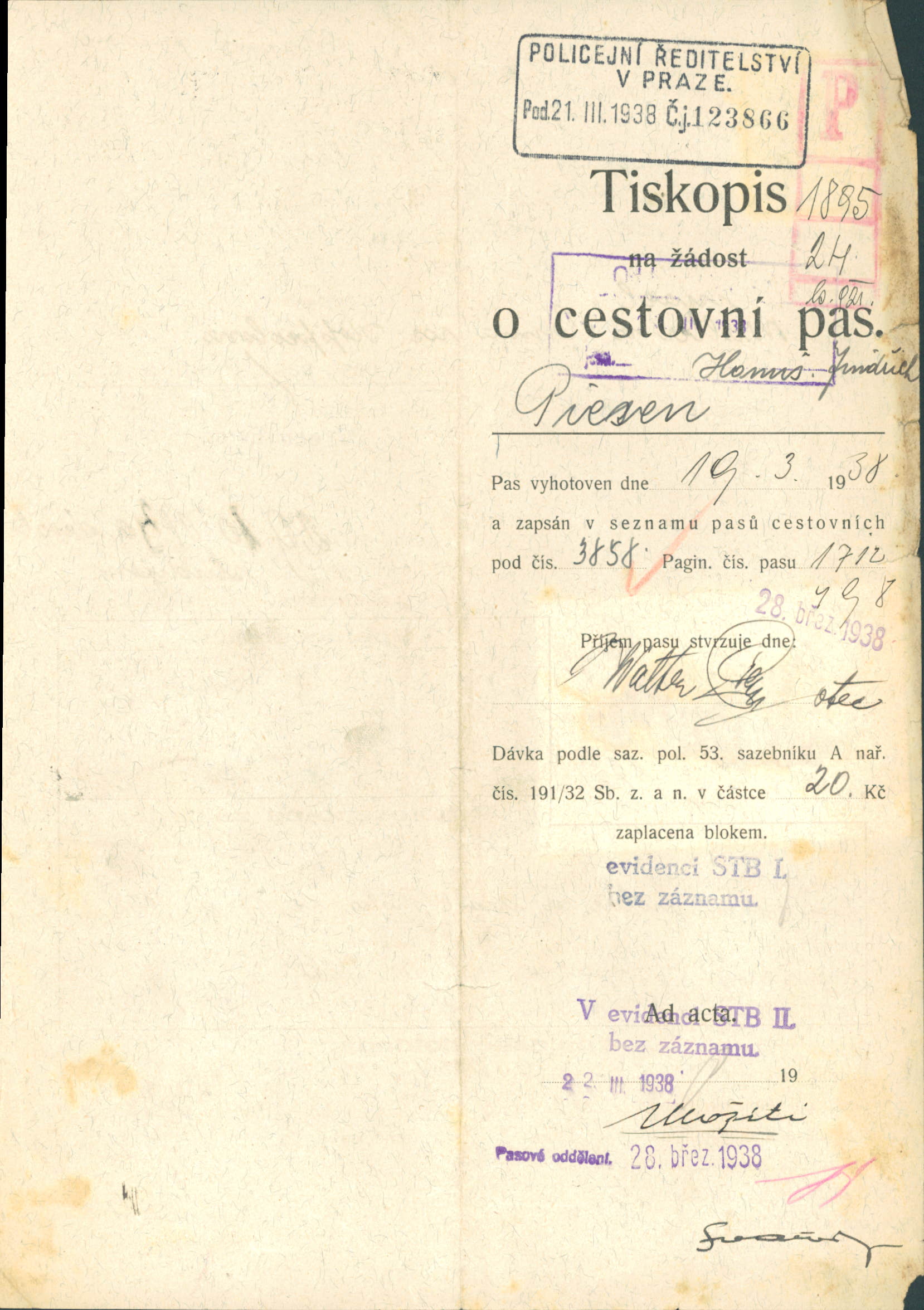 For publication purposes, contact the National Archives in Prague, where the original document is located. The document was digitized by the Terezín Initiative Institute, the Terezín Album project