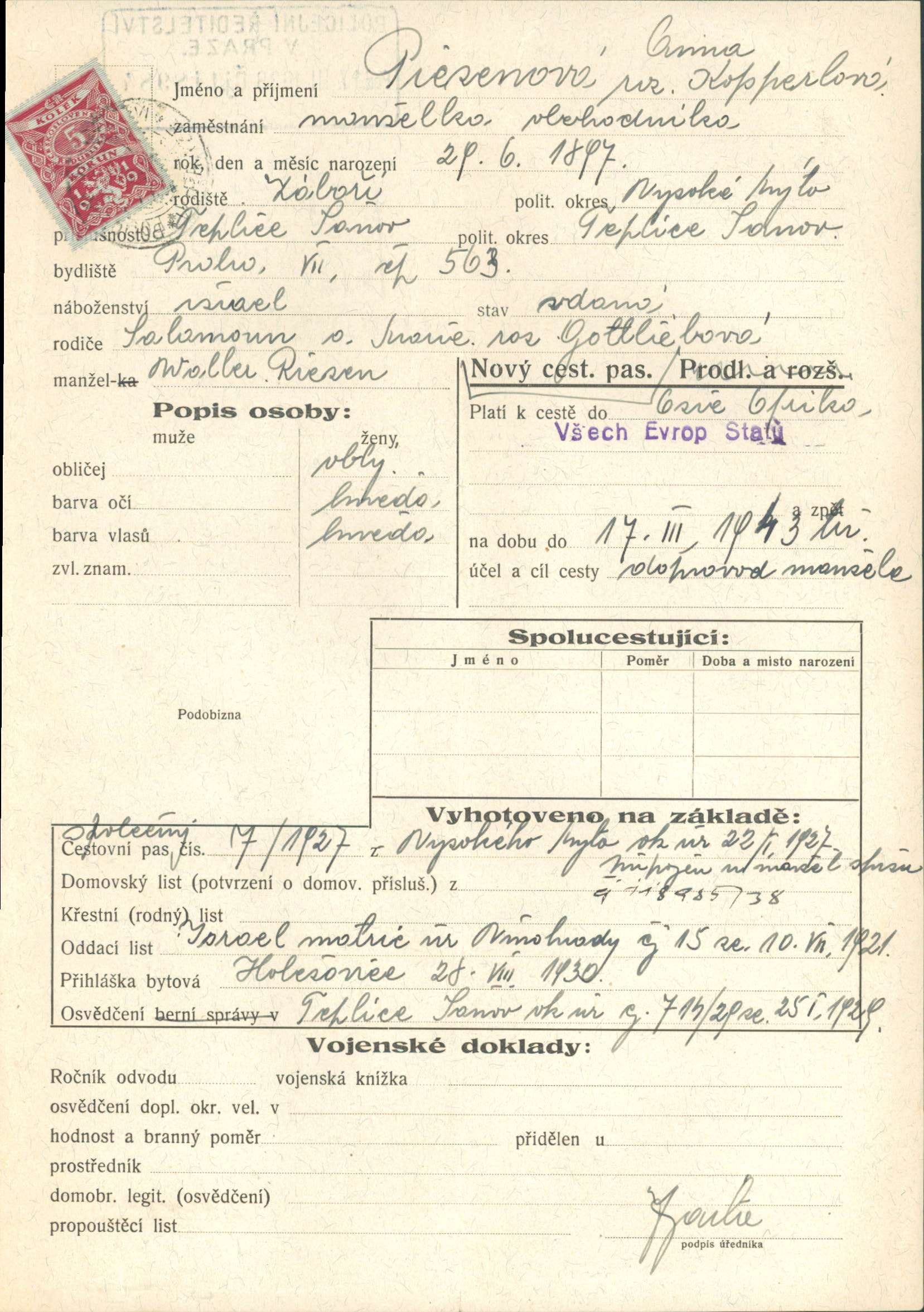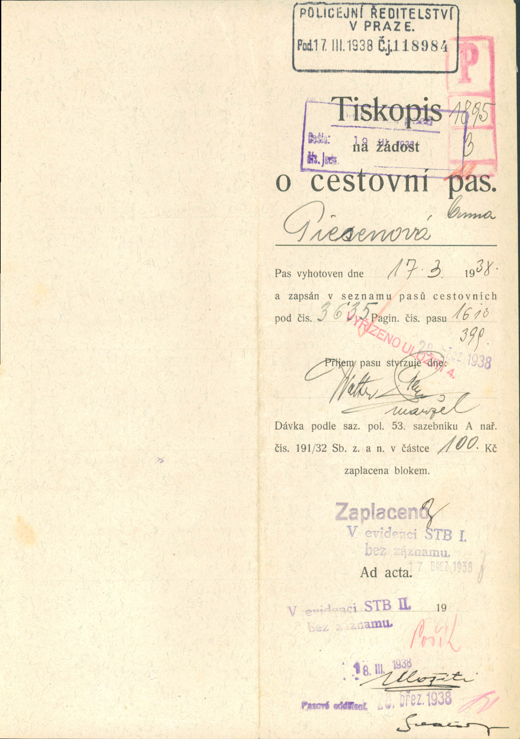 Piesenová Anna: Žádost o vydání cestovního pasu