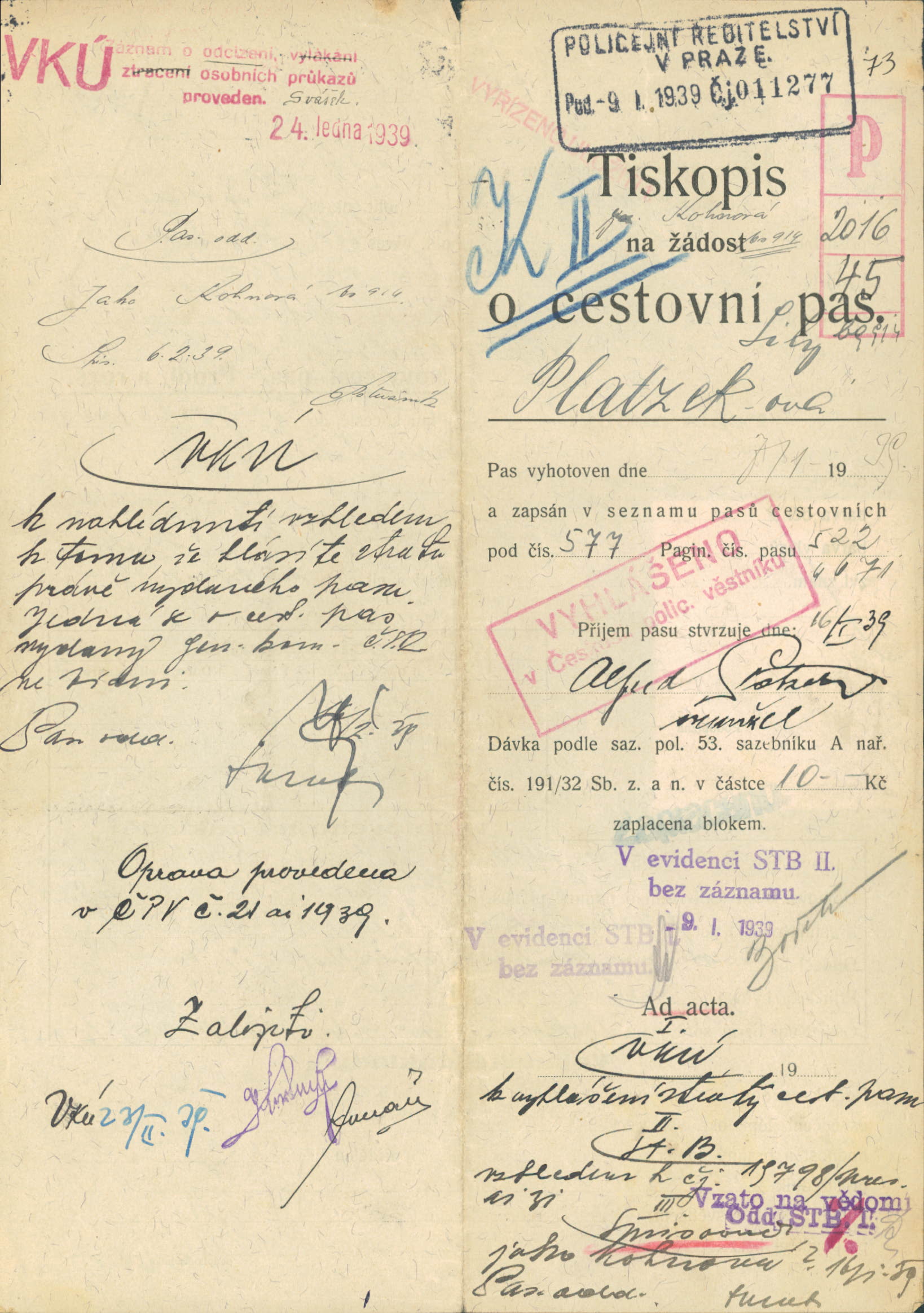 Platzeková Lily: Žádost o vydání cestovního pasu