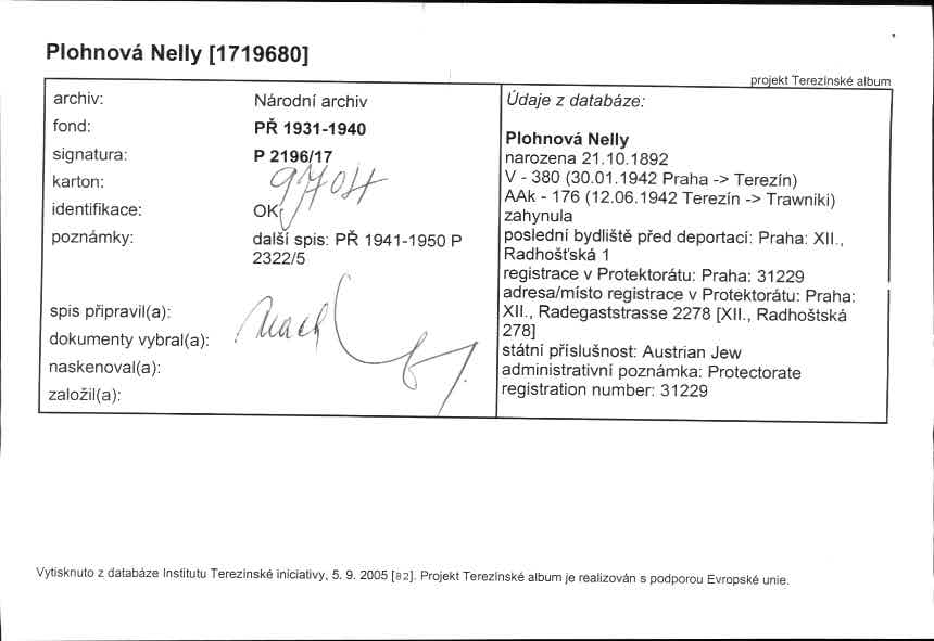 For publication purposes, contact the National Archives in Prague, where the original document is located. The document was digitized by the Terezín Initiative Institute, the Terezín Album project