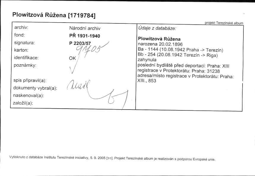 Plowitzová Růžena: NEZPRACOVÁNO