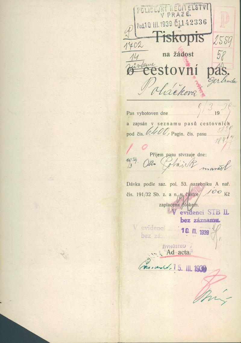 Nationalarchiv Prag > Polizei-Direktion Prag > 1931-1940 > P > Poláčková Gertruda
