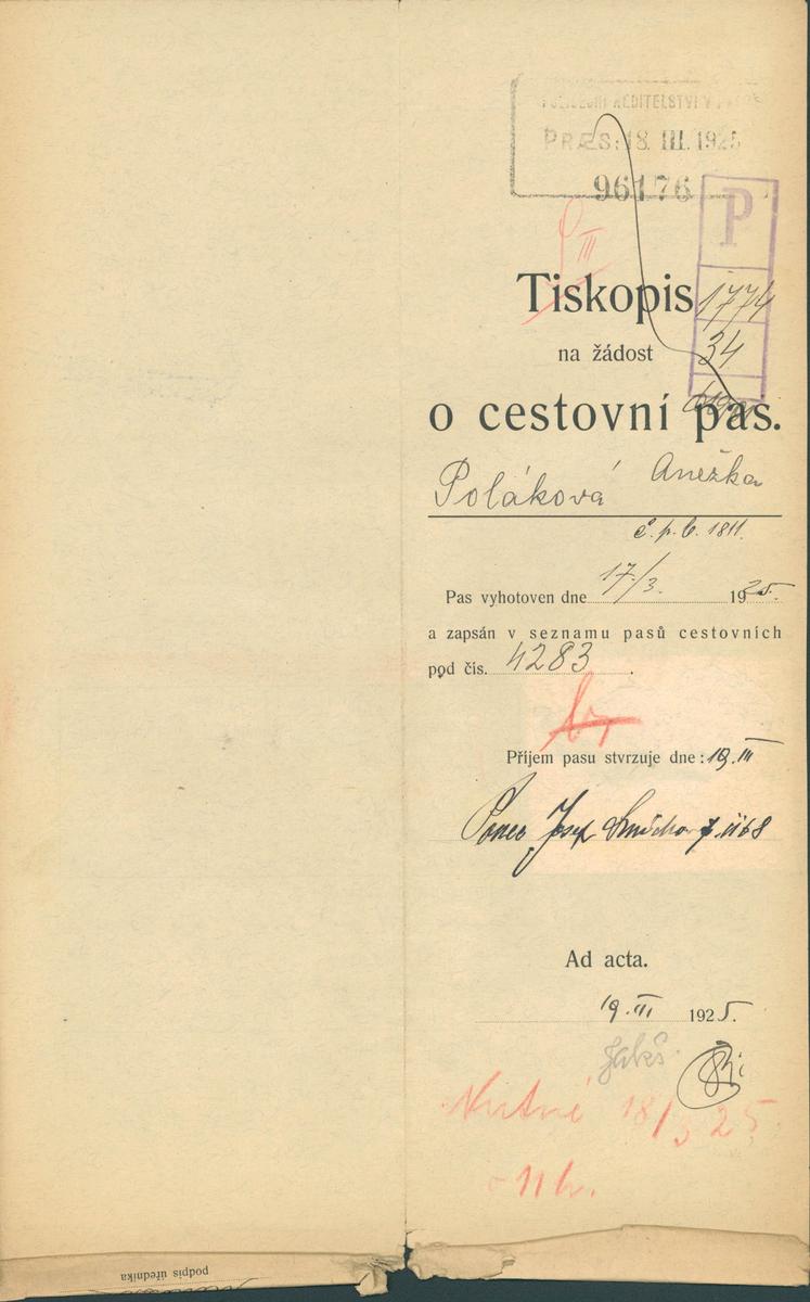 Nationalarchiv Prag > Polizei-Direktion Prag > 1931-1940 > P > Poláková Anežka
