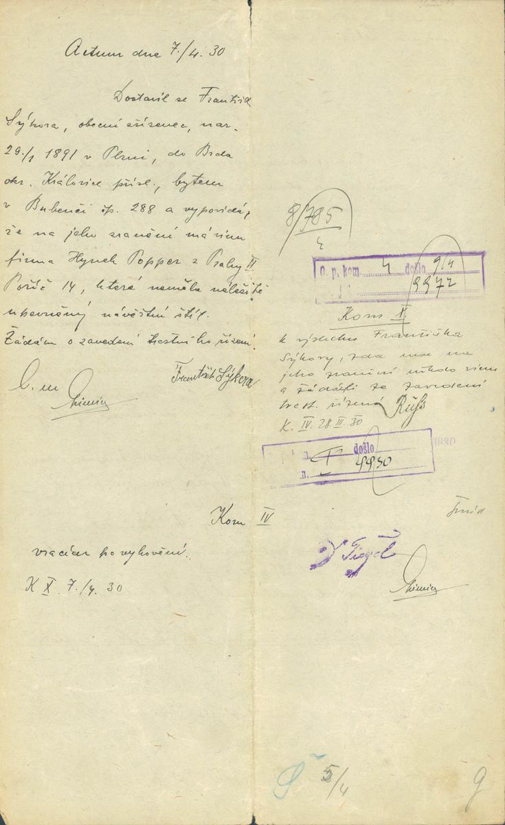 Nationalarchiv Prag > Polizei-Direktion Prag > 1931-1940 > P > Popper Bedřich
