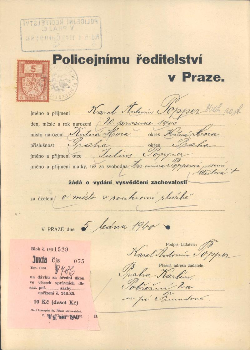 Nationalarchiv Prag > Polizei-Direktion Prag > 1931-1940 > P > Popper Karel