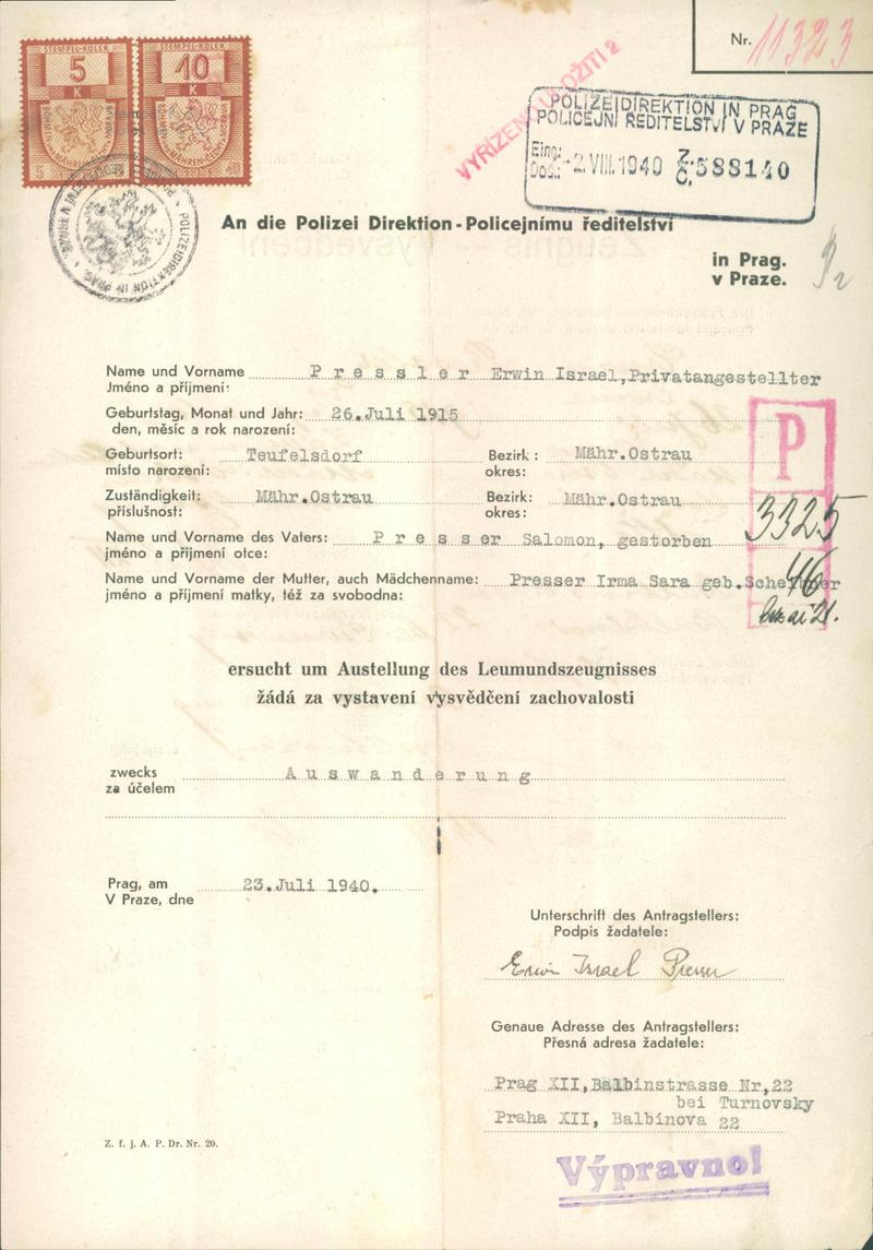 Nationalarchiv Prag > Polizei-Direktion Prag > 1931-1940 > P > Presser Ervín
