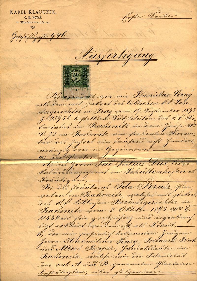 Dux Julius, Duxová Ida: Předmanželská smlouva