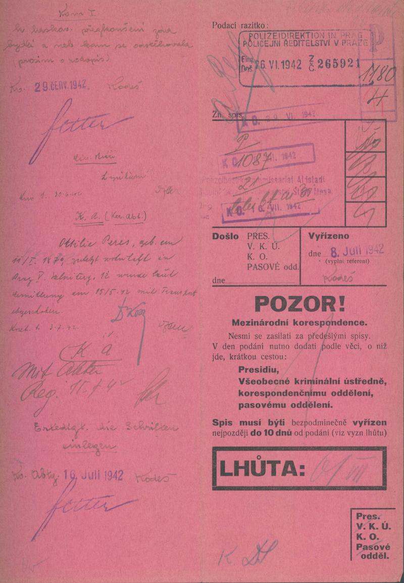 Nationalarchiv Prag > Polizei-Direktion Prag > 1941-1950 > P > Peresová Otylie