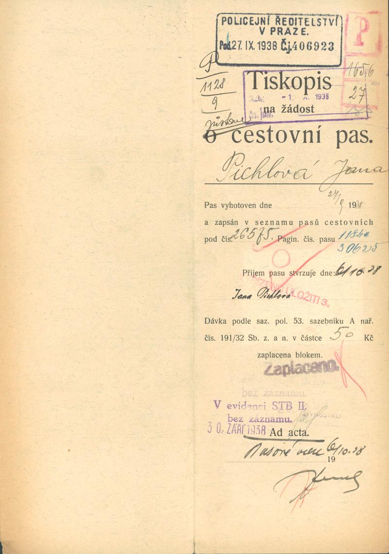 Nationalarchiv Prag > Polizei-Direktion Prag > 1941-1950 > P > Pichlová Jana