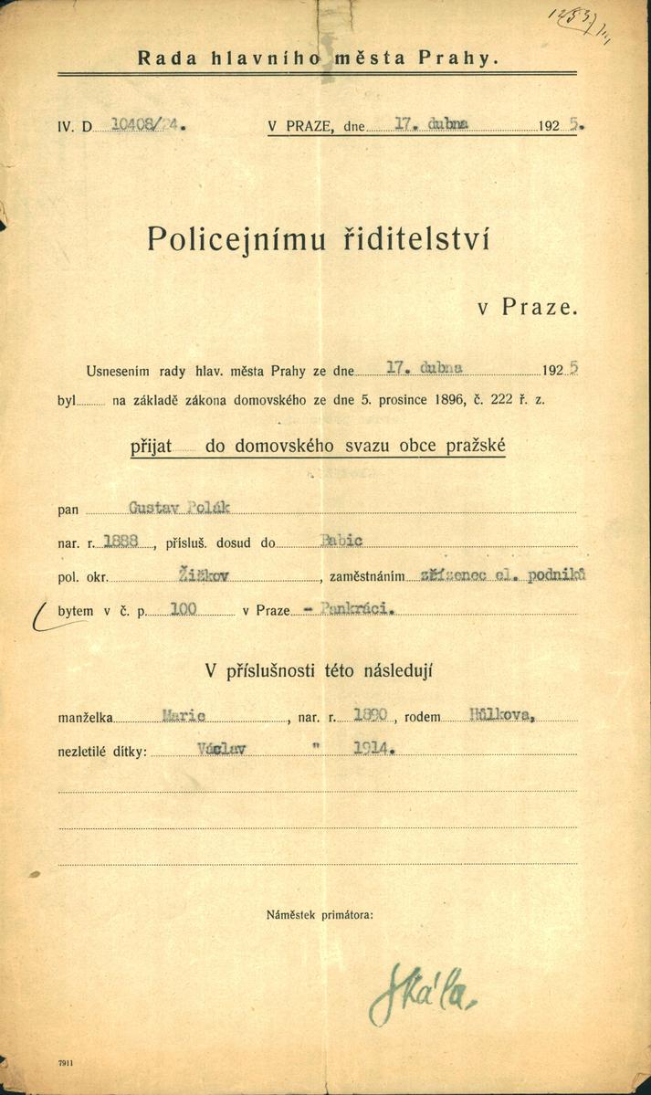 Nationalarchiv Prag > Polizei-Direktion Prag > 1941-1950 > P > Pollak Gustav