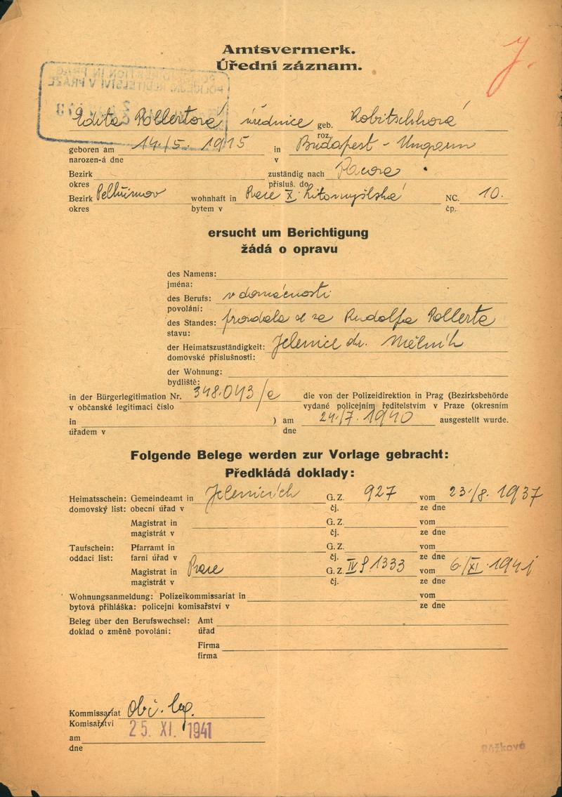 Nationalarchiv Prag > Polizei-Direktion Prag > 1941-1950 > P > Pollertová Edita