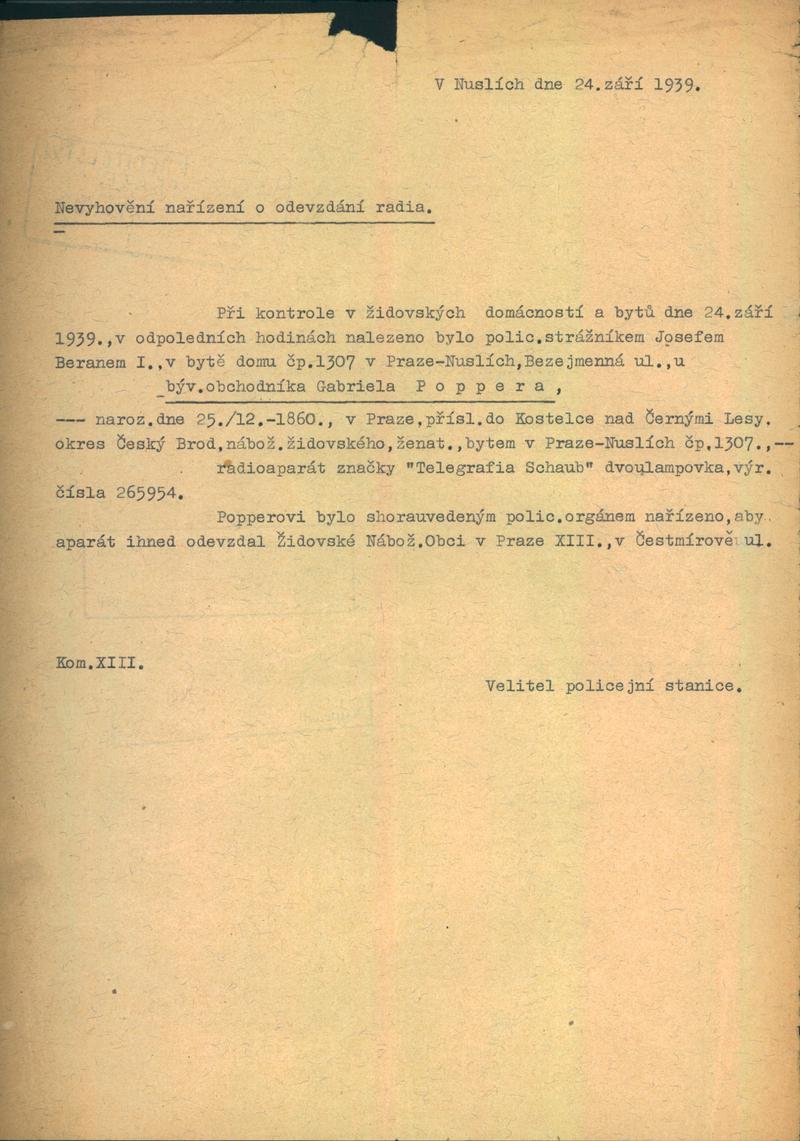 Nationalarchiv Prag > Polizei-Direktion Prag > 1941-1950 > P > Popper Gabriel