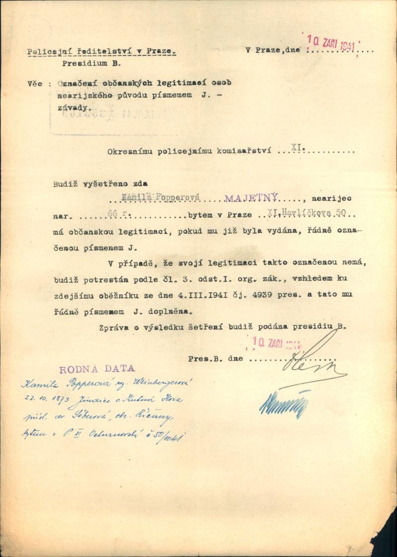 Nationalarchiv Prag > Polizei-Direktion Prag > 1941-1950 > P > Popperová Kamila